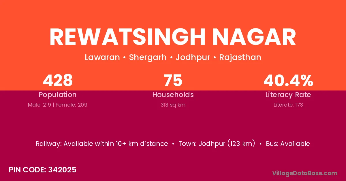 Rewatsingh Nagar village has a total population of 428 people, of which 219 are males and 209 are females.