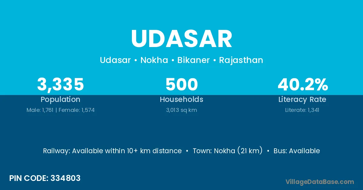 According to Census 2011 information, the village code of Udasar village is 342025.