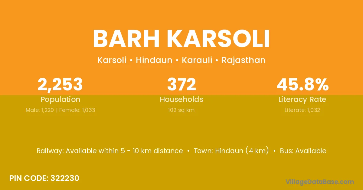 Hindaun (4 km) is the nearest town to Barh Karsoli village for major economic activities and is located approximately 4 km away.
