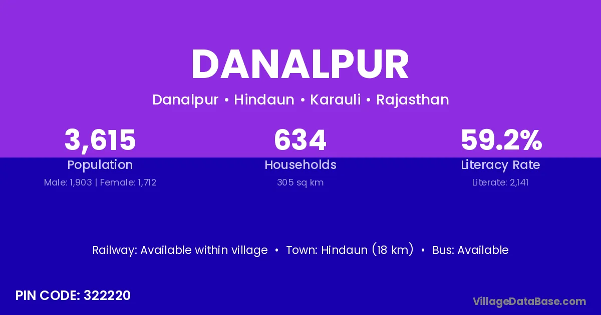 Hindaun (18 km) is the nearest town to Danalpur village for major economic activities and is located approximately 18 km away.