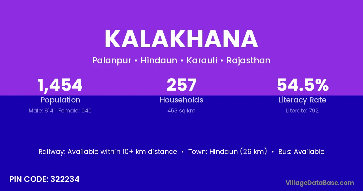 Hindaun (26 km) is the nearest town to Kalakhana village for major economic activities and is located approximately 26 km away.