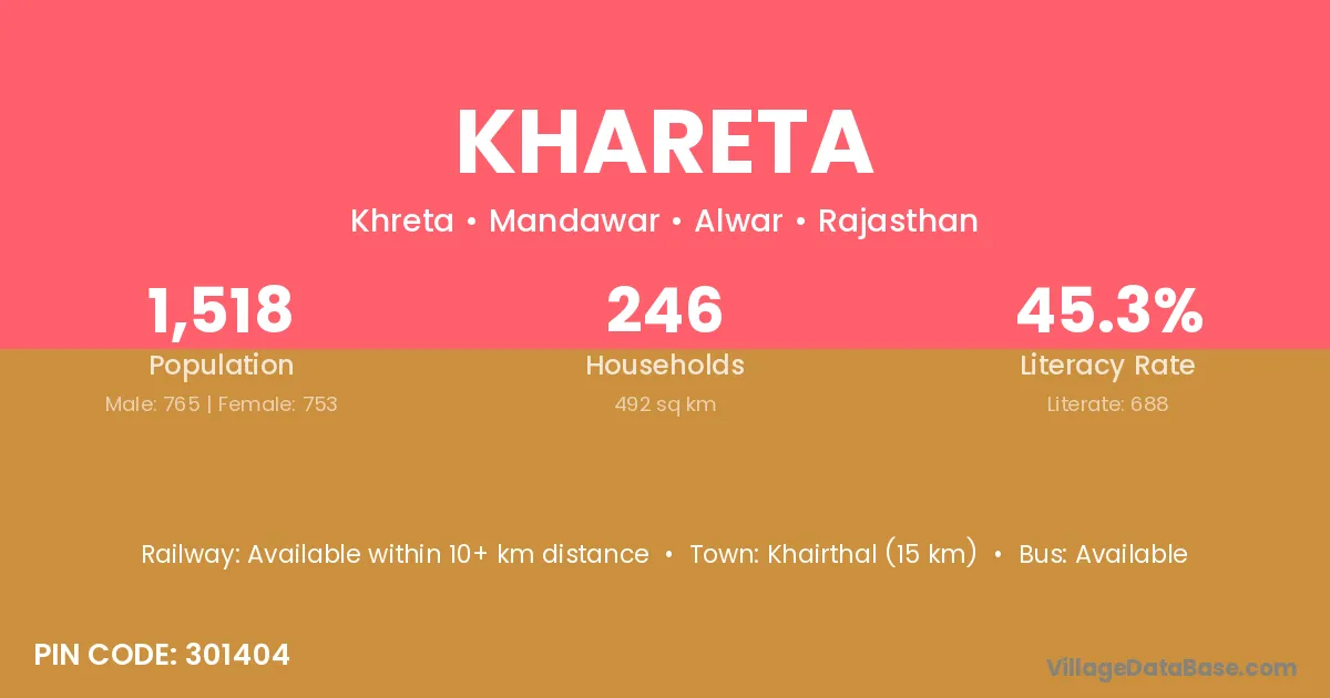 Hindaun (12 km) is the nearest town to Khareta village for major economic activities and is located approximately 12 km away.