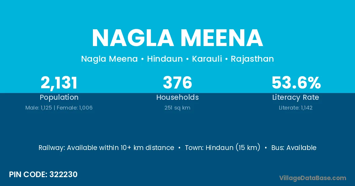Hindaun (15 km) is the nearest town to Nagla Meena village for major economic activities and is located approximately 15 km away.
