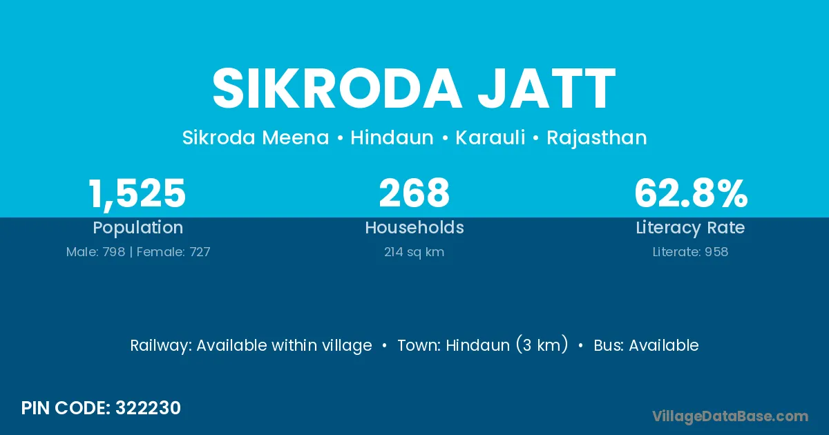 Hindaun (3 km) is the nearest town to Sikroda Jatt village for major economic activities and is located approximately 3 km away.