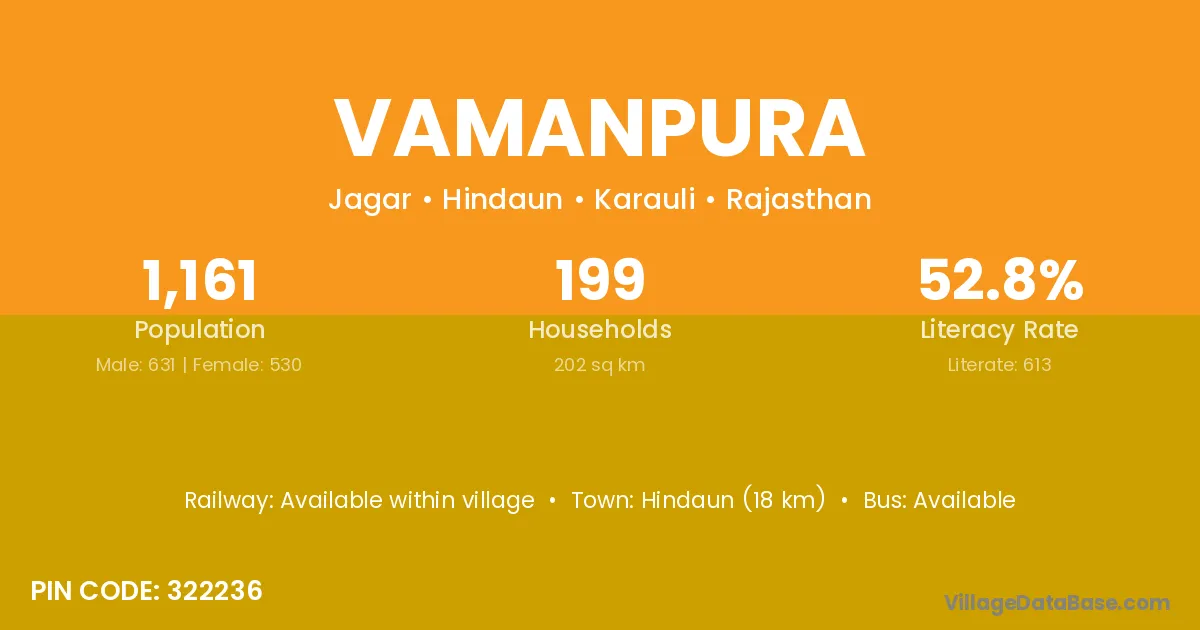Hindaun (18 km) is the nearest town to Vamanpura village for major economic activities and is located approximately 18 km away.