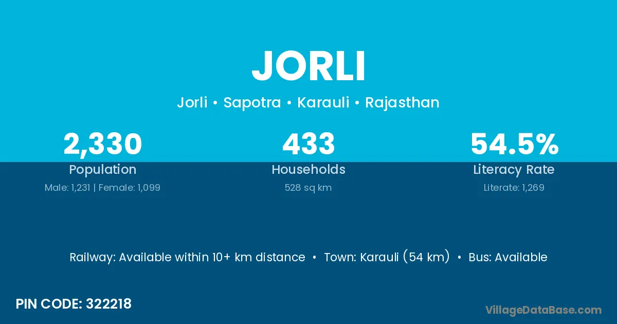 Karauli (54 km) is the nearest town to Jorli village for major economic activities and is located approximately 54 km away.