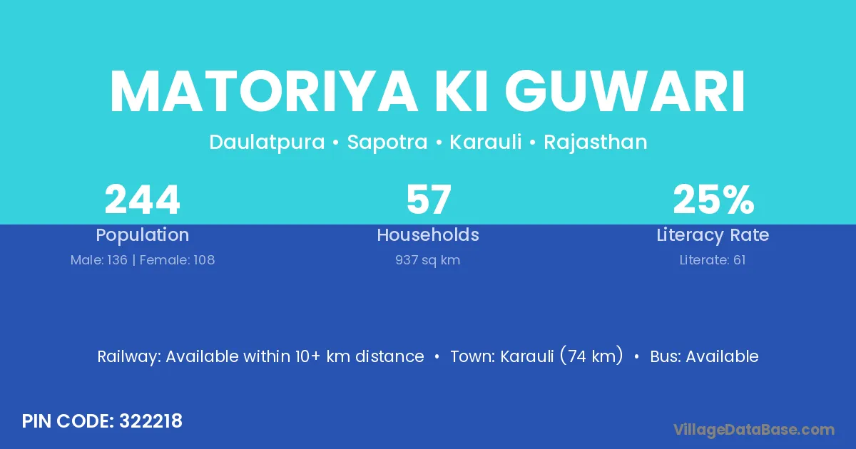 Matoriya Ki Guwari village has a total population of 244 people, of which 136 are males and 108 are females.