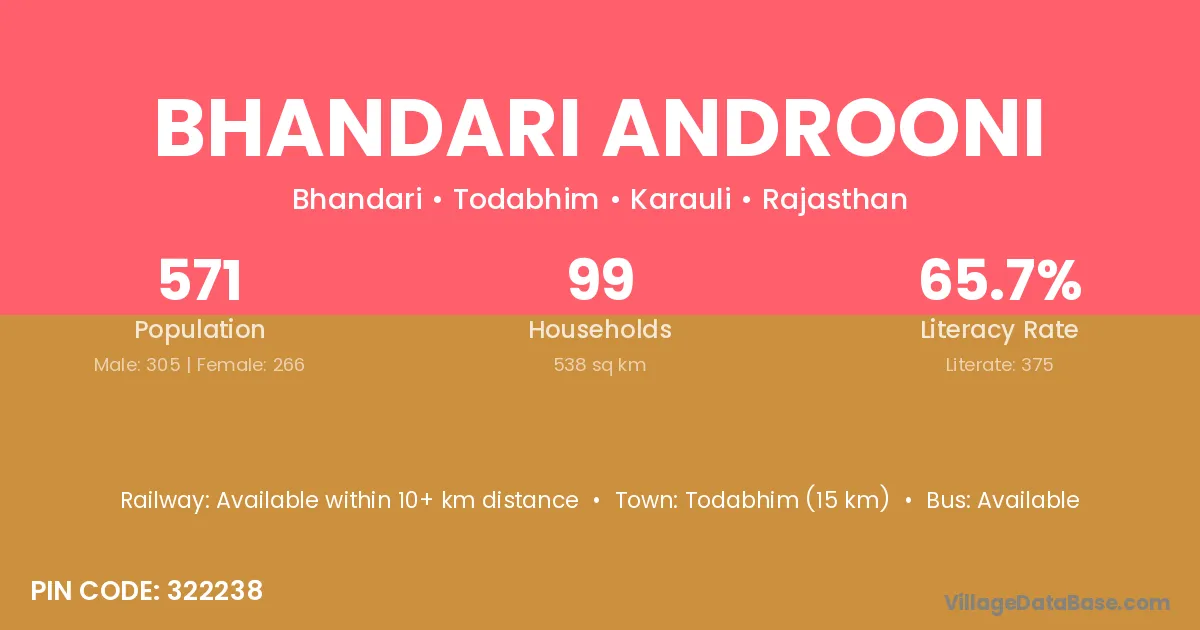 According to Census 2011 information, the village code of Bhandari Androoni village is 322238.