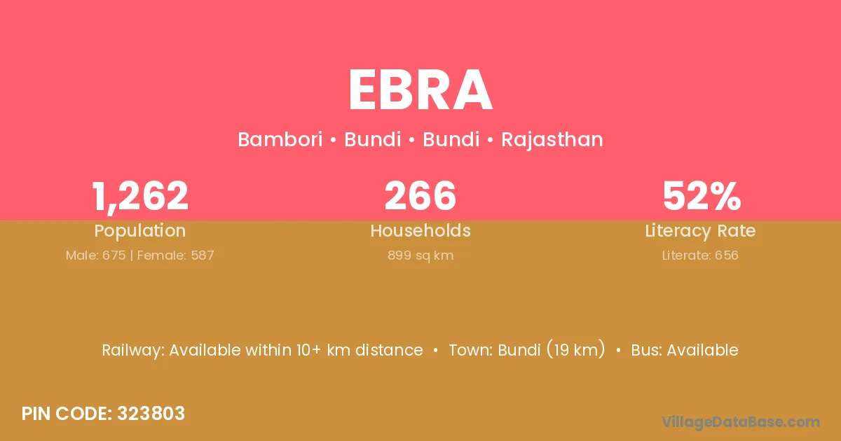 Kota (66 km) is the nearest town to Ebra village for major economic activities and is located approximately 66 km away.
