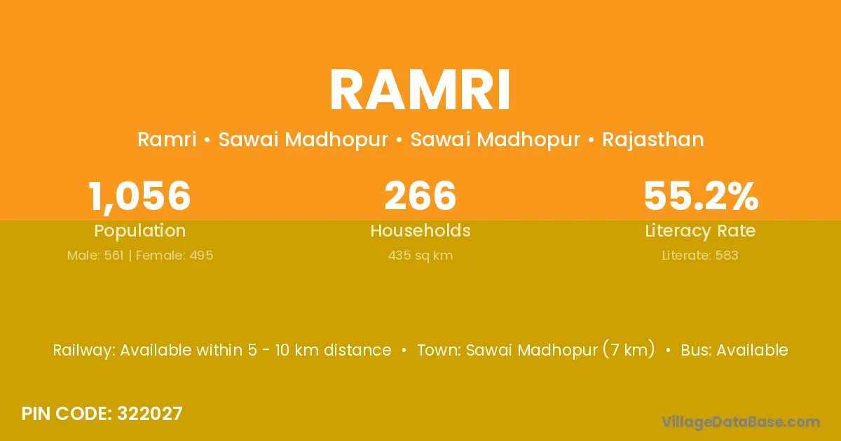 According to Census 2011 information, the village code of Ramri village is 325201.