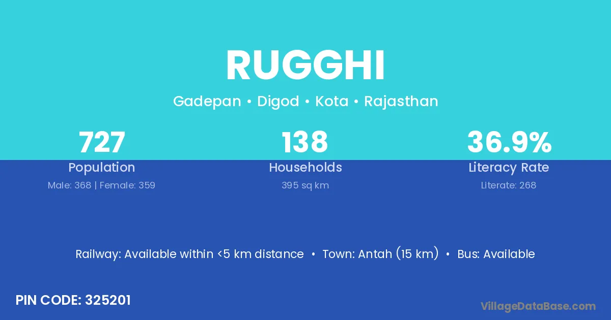 Antah (15 km) is the nearest town to Rugghi village for major economic activities and is located approximately 15 km away.