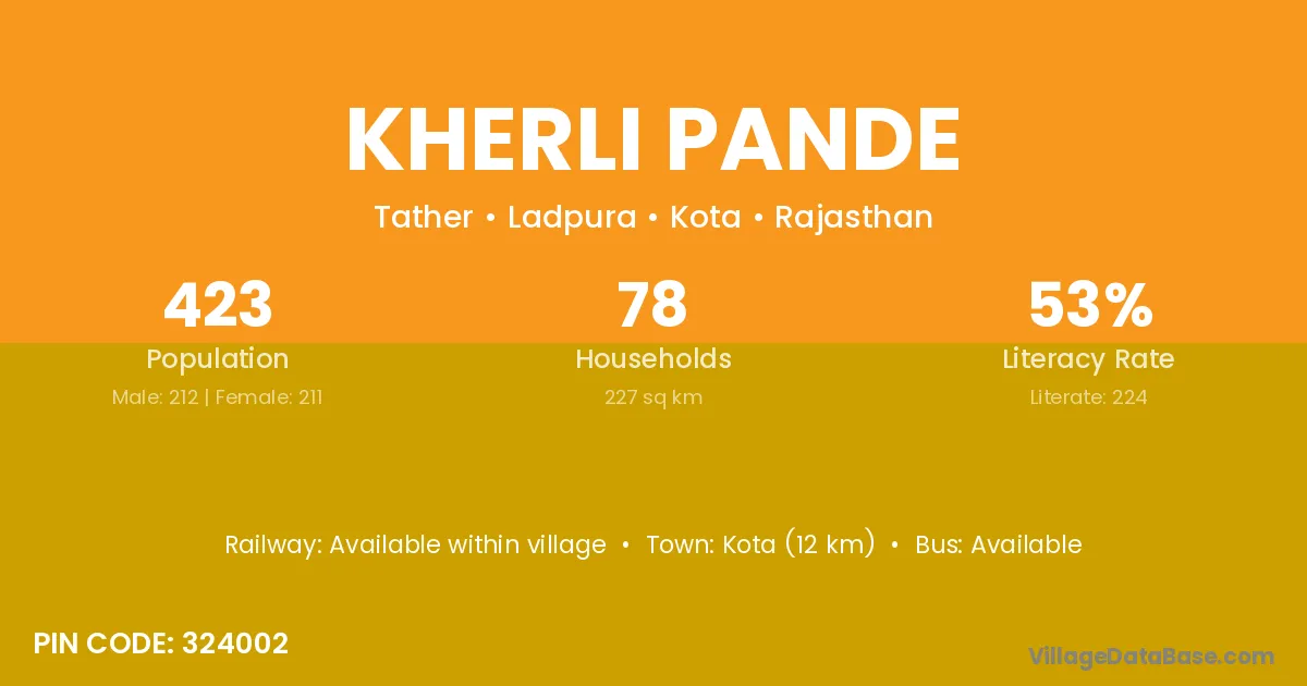 Kota (12 km) is the nearest town to Kherli Pande village for major economic activities and is located approximately 12 km away.