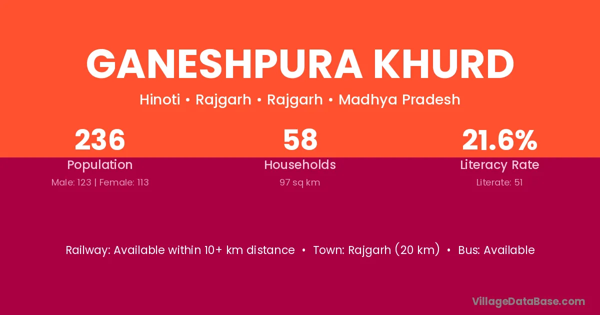 Ramganj Mandi (8 km) is the nearest town to Ganeshpura Khurd village for major economic activities and is located approximately 8 km away.