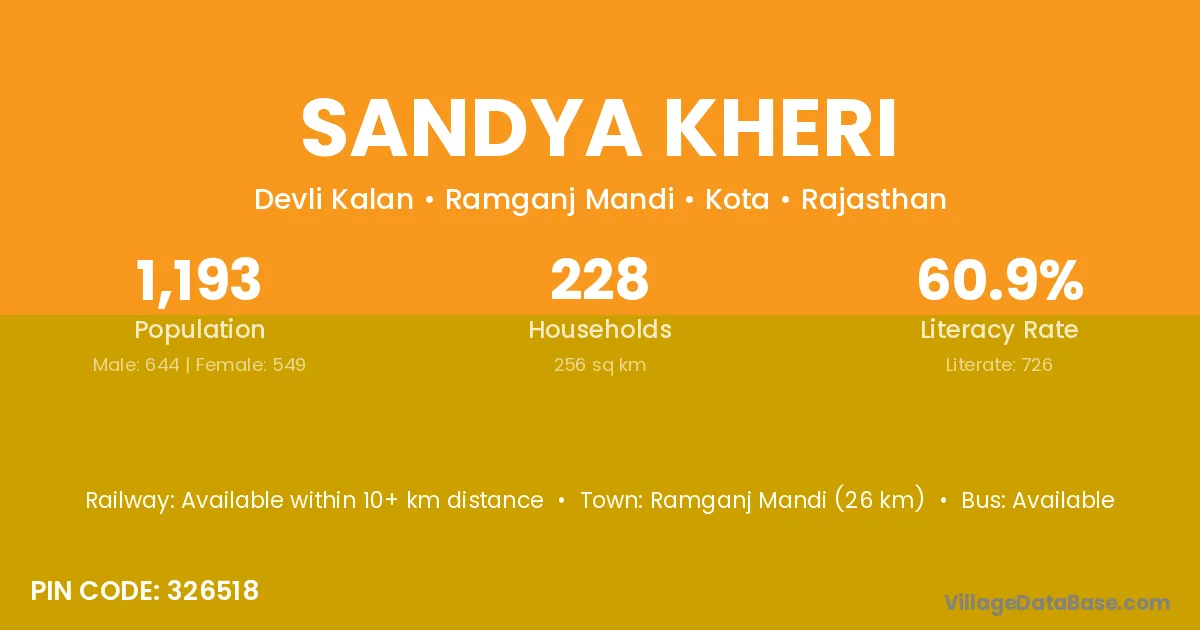 Ramganj Mandi (26 km) is the nearest town to Sandya Kheri village for major economic activities and is located approximately 26 km away.
