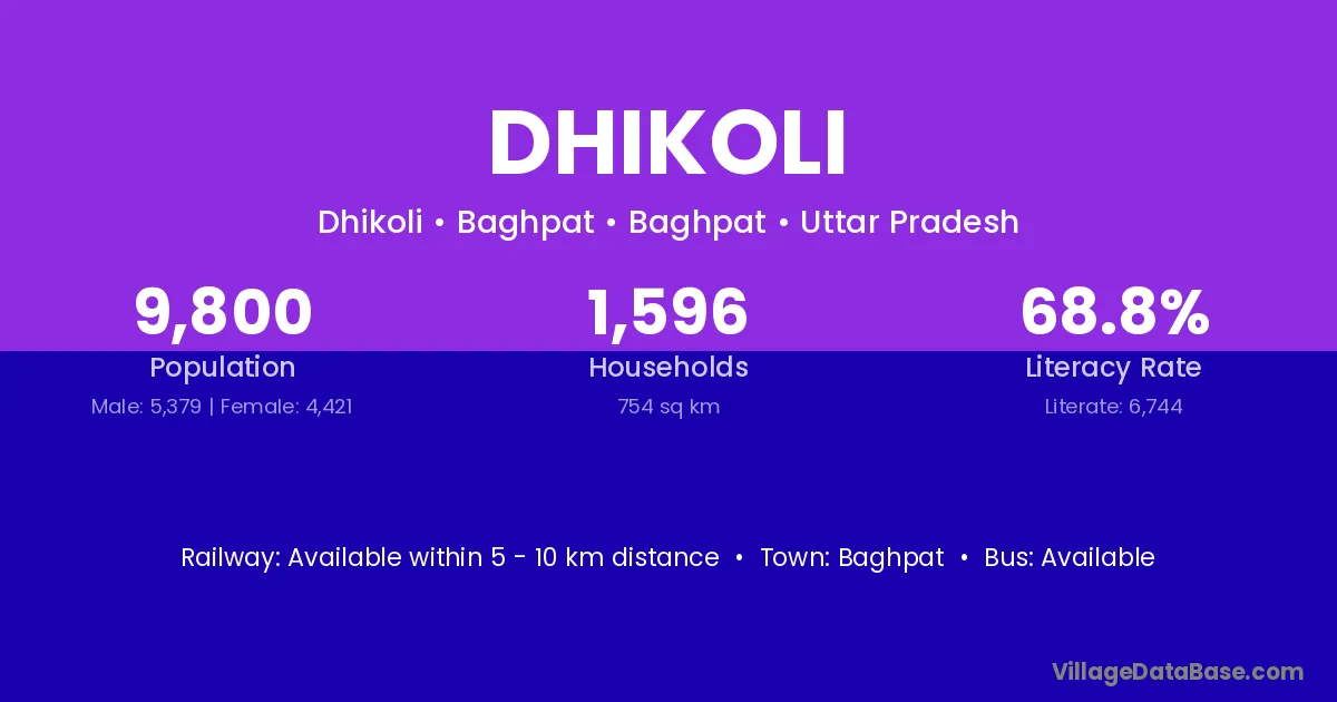 Dhikoli village has a total population of 1,536 people, of which 778 are males and 758 are females.