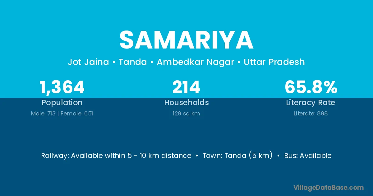 Samariya village has a total population of 600 people, of which 341 are males and 259 are females.