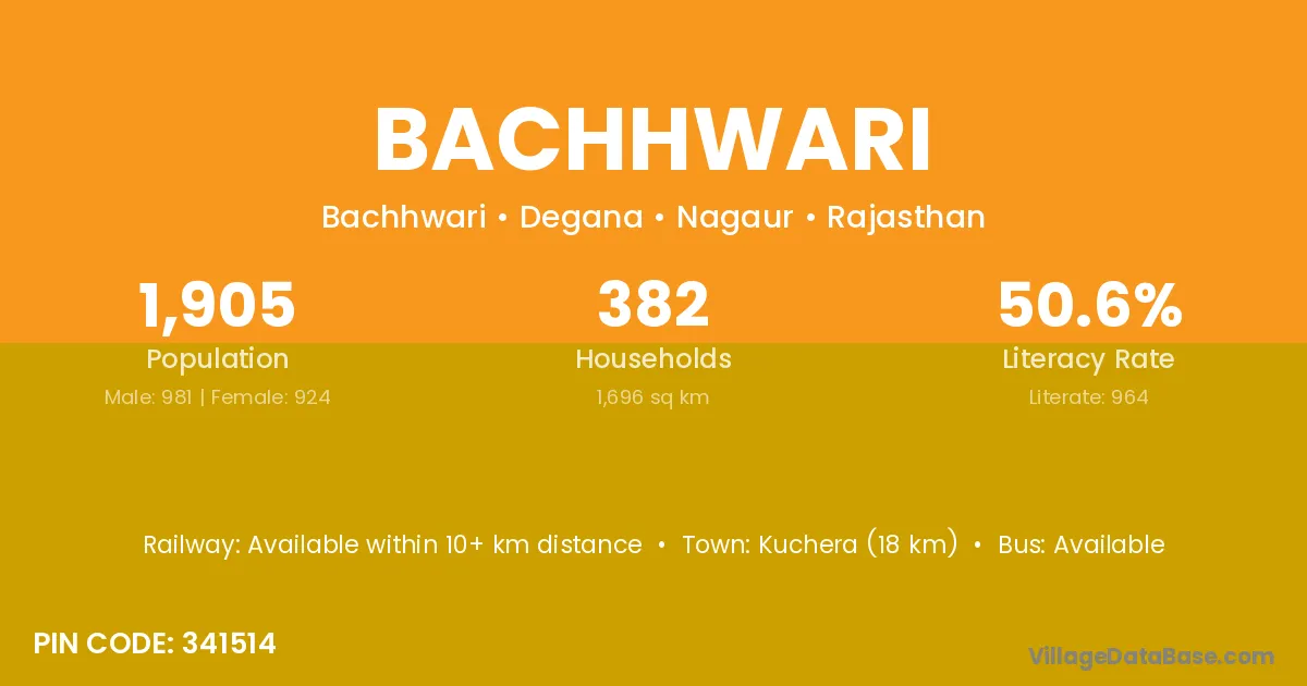 Kuchera (18 km) is the nearest town to Bachhwari village for major economic activities and is located approximately 18 km away.
