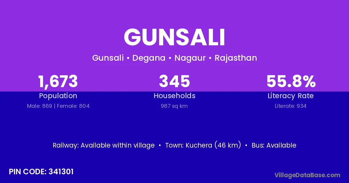 Kuchera (46 km) is the nearest town to Gunsali village for major economic activities and is located approximately 46 km away.