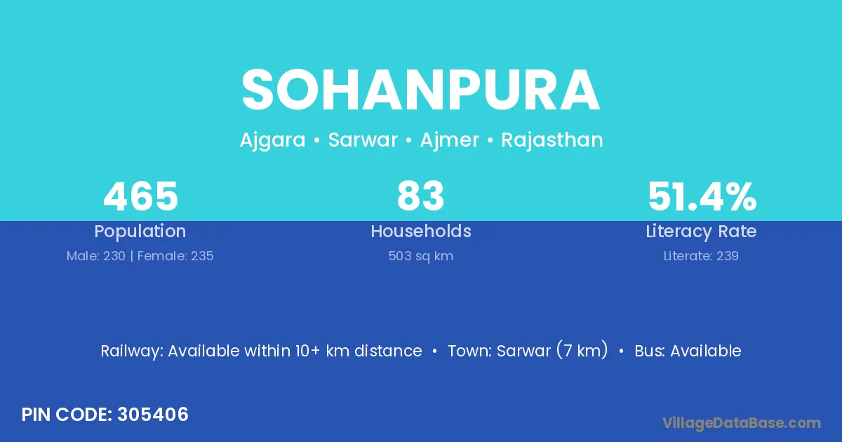 Nagaur (62 km) is the nearest town to Sohanpura village for major economic activities and is located approximately 62 km away.