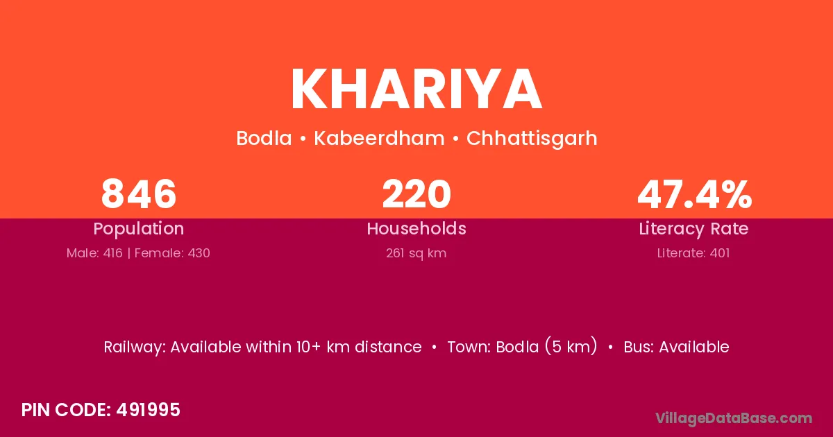 According to Census 2011 information, the village code of Khariya village is 341551.