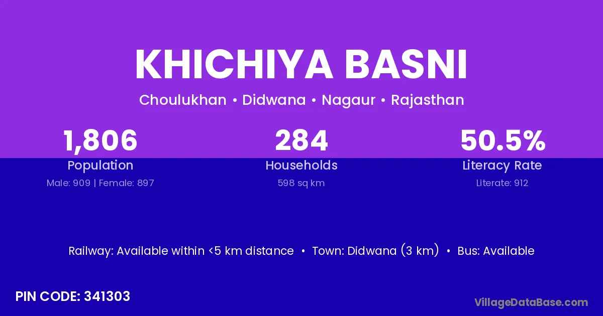 Didwana (3 km) is the nearest town to Khichiya Basni village for major economic activities and is located approximately 3 km away.