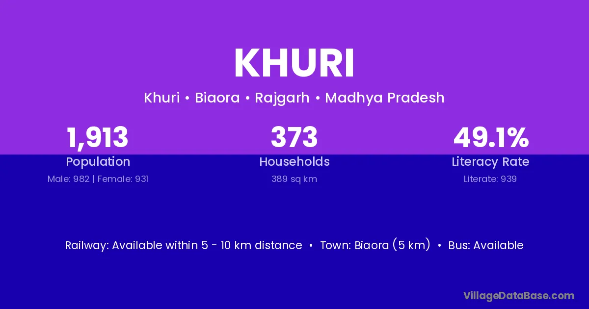 The literacy rate of Khuri village is 51.36%. Male literacy stands at 61.93% and female literacy at 42.35%.