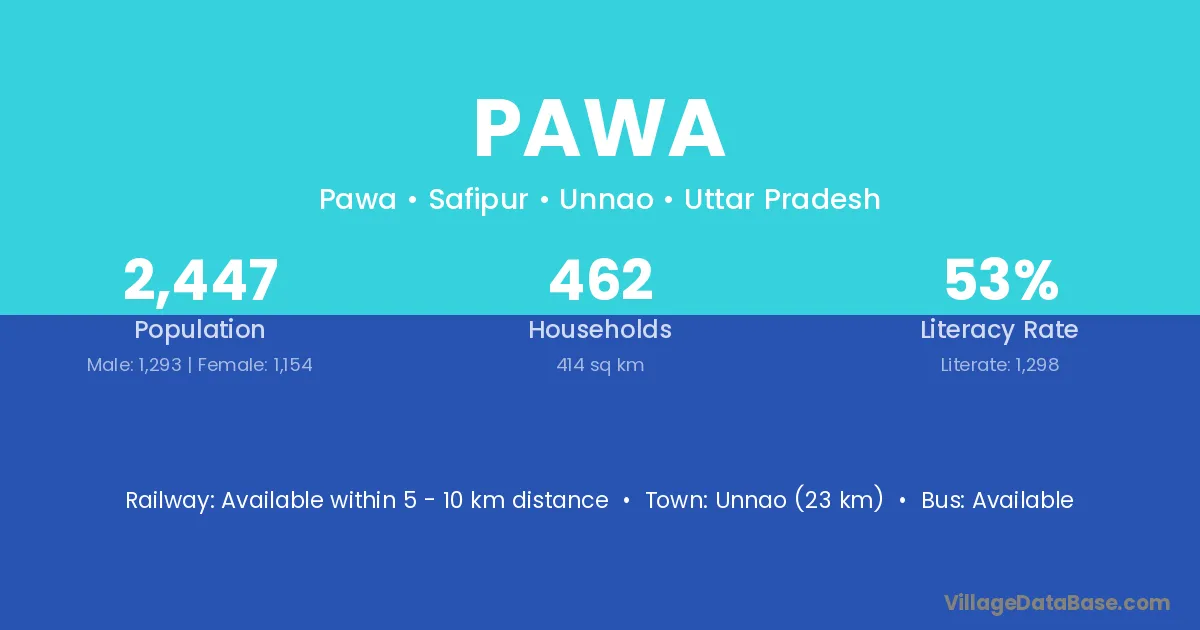 Pawa village has a total population of 2,554 people, of which 1,311 are males and 1,243 are females.