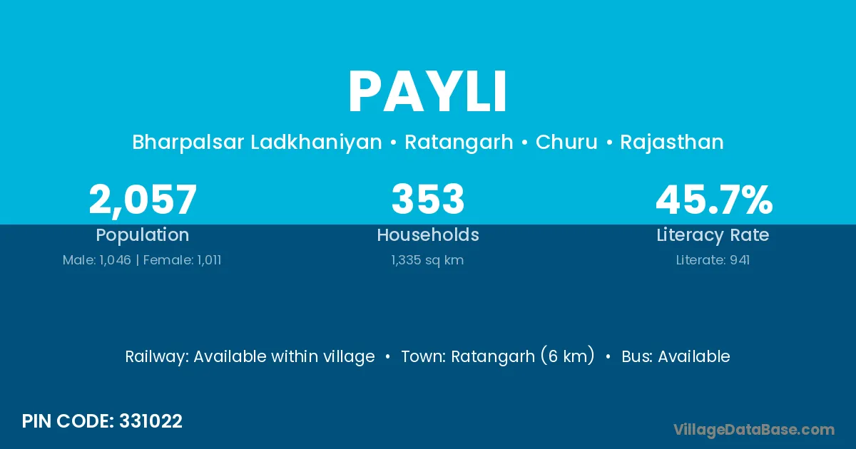 Didwana (30 km) is the nearest town to Payli village for major economic activities and is located approximately 30 km away.