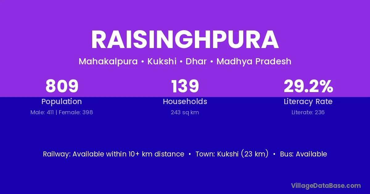 Didwana (15 km) is the nearest town to Raisinghpura village for major economic activities and is located approximately 15 km away.