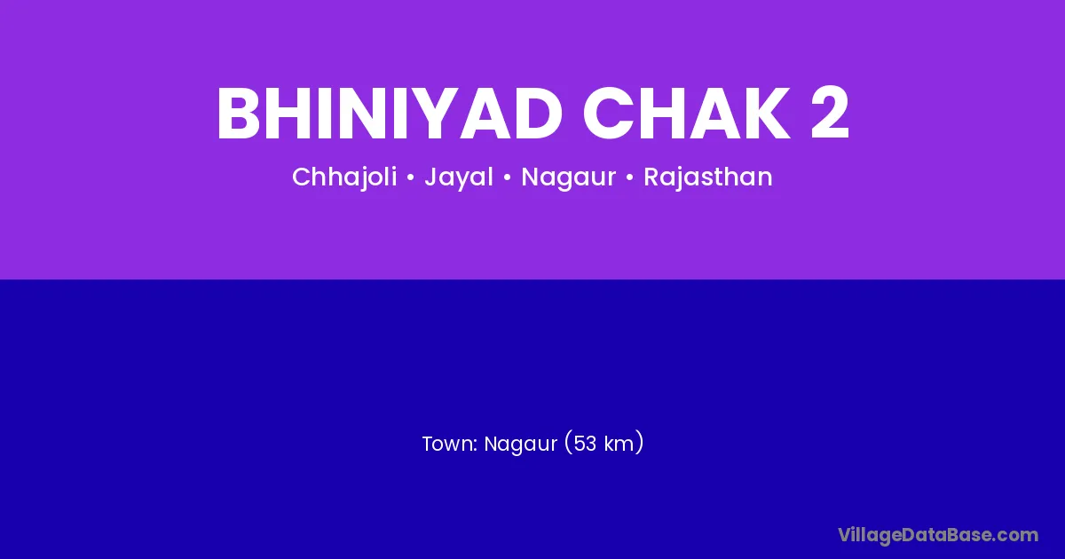 Bhiniyad Chak 2 village is located in the Jayal Tehsil of the Nagaur district in Rajasthan .