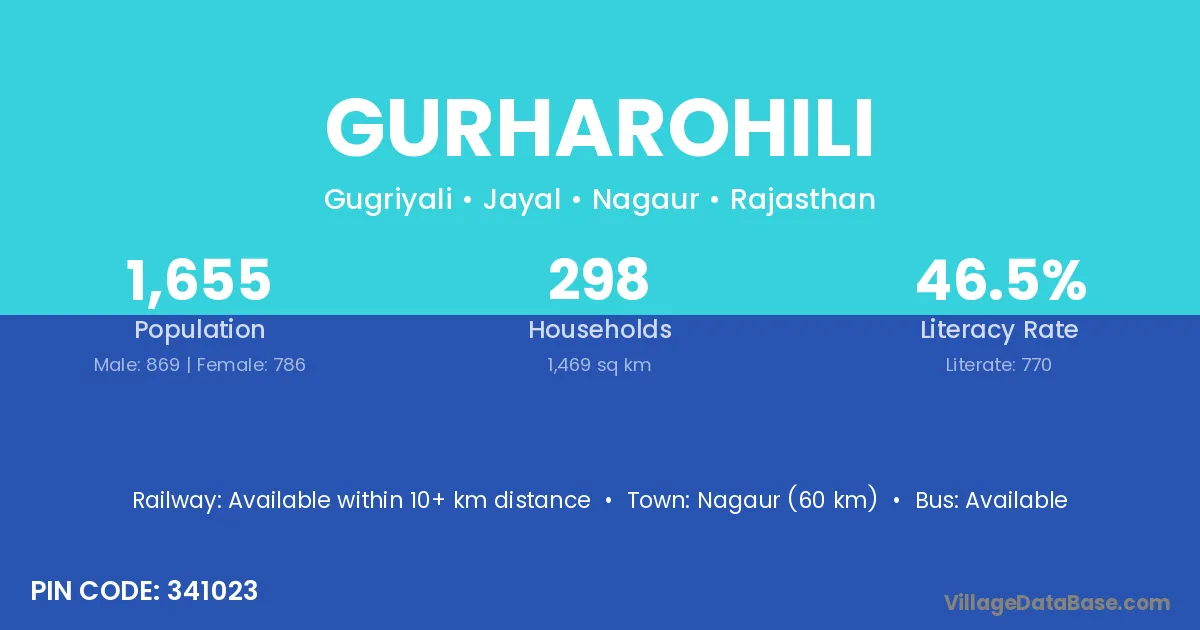 Nagaur (60 km) is the nearest town to Gurharohili village for major economic activities and is located approximately 60 km away.