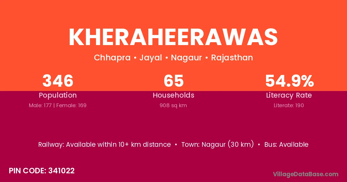 Nagaur (30 km) is the nearest town to Kheraheerawas village for major economic activities and is located approximately 30 km away.