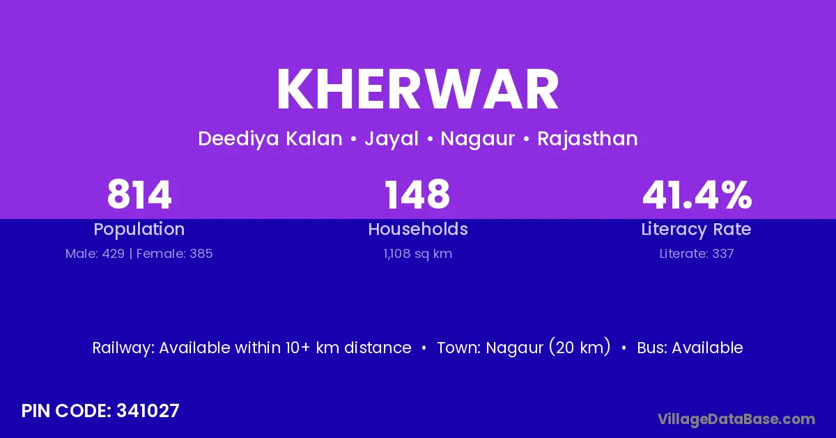 Nagaur (20 km) is the nearest town to Kherwar village for major economic activities and is located approximately 20 km away.