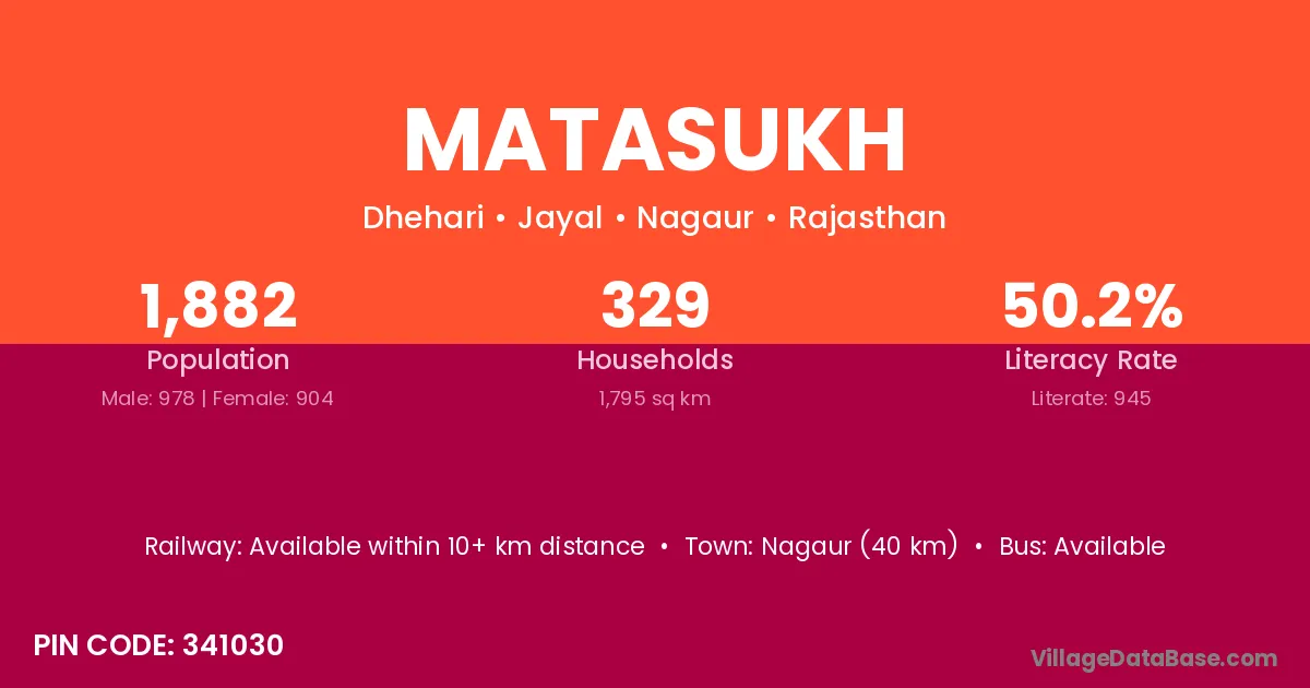 Nagaur (40 km) is the nearest town to Matasukh village for major economic activities and is located approximately 40 km away.