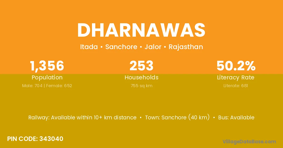 According to Census 2011 information, the village code of Dharnawas village is 341025.