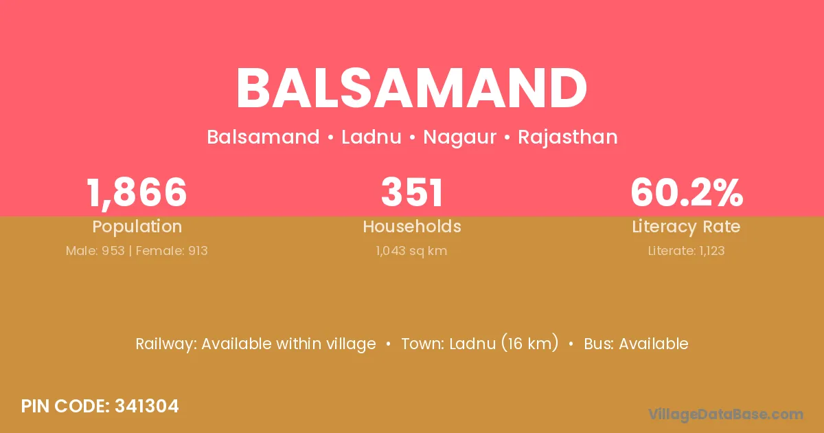 Ladnu (16 km) is the nearest town to Balsamand village for major economic activities and is located approximately 16 km away.