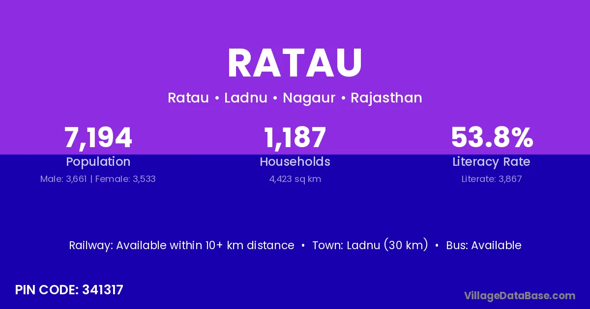 Ladnu (30 km) is the nearest town to Ratau village for major economic activities and is located approximately 30 km away.