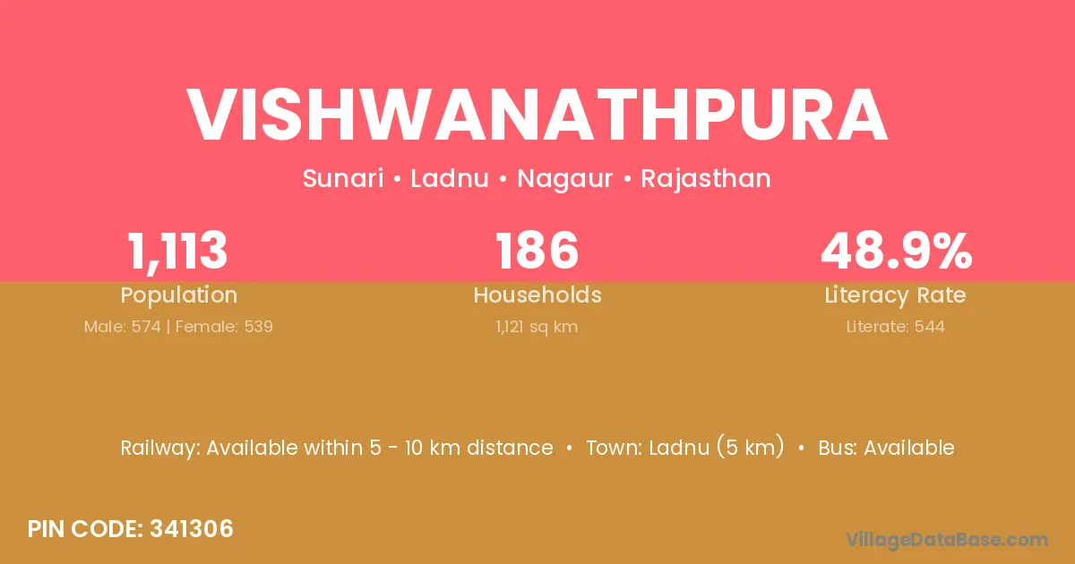 Ladnu (5 km) is the nearest town to Vishwanathpura village for major economic activities and is located approximately 5 km away.