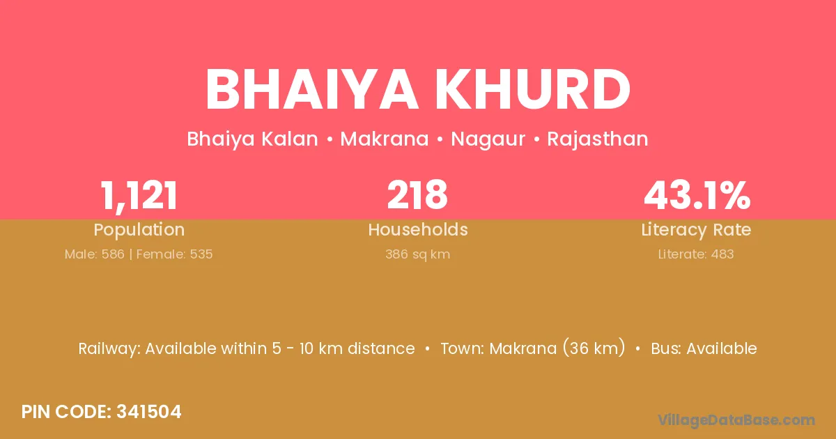 Makrana (36 km) is the nearest town to Bhaiya Khurd village for major economic activities and is located approximately 36 km away.