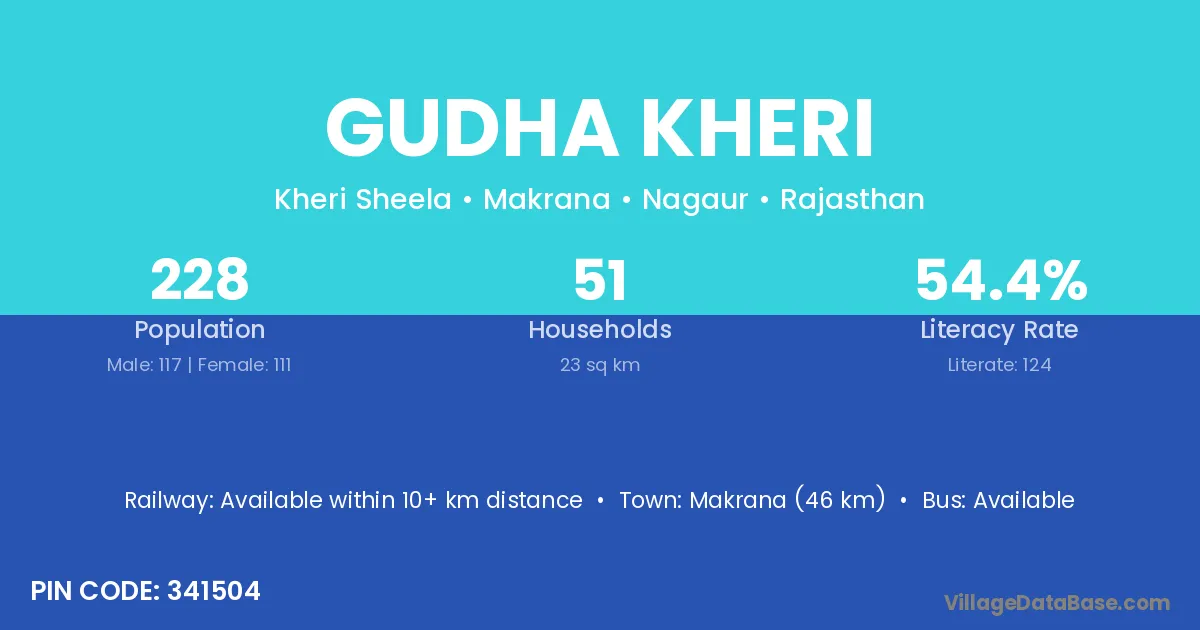 Makrana (46 km) is the nearest town to Gudha Kheri village for major economic activities and is located approximately 46 km away.