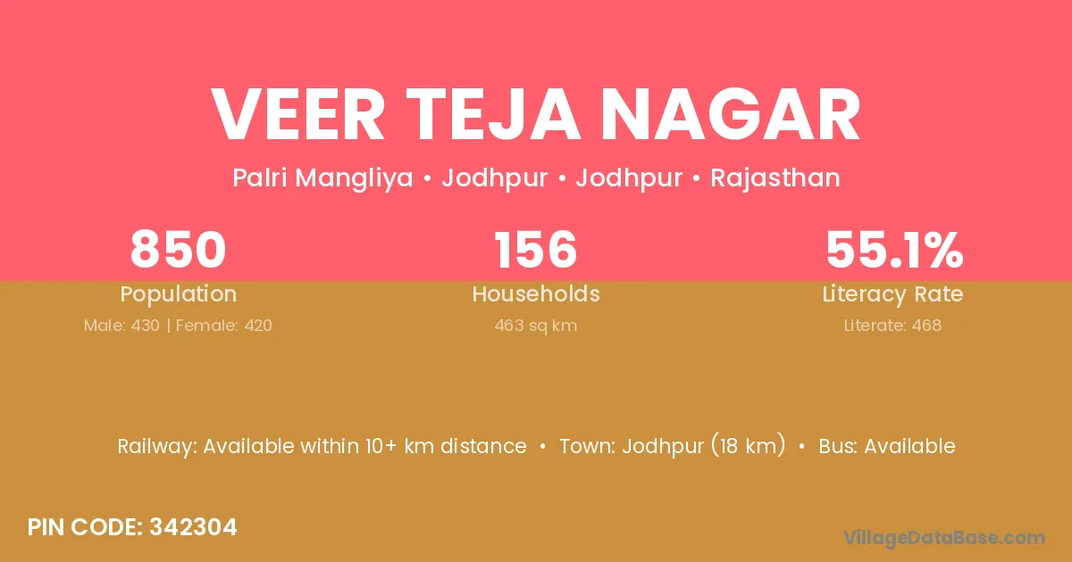 Merta City (25 km) is the nearest town to Veer Teja Nagar village for major economic activities and is located approximately 25 km away.