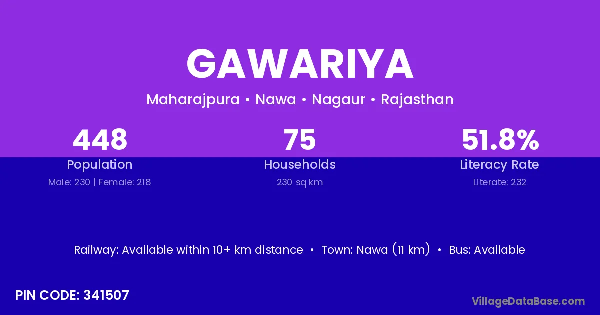 Nawa (11 km) is the nearest town to Gawariya village for major economic activities and is located approximately 11 km away.