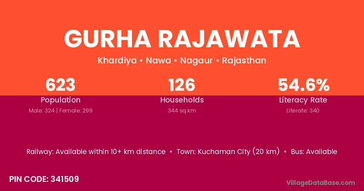 Kuchaman City (20 km) is the nearest town to Gurha Rajawata village for major economic activities and is located approximately 20 km away.