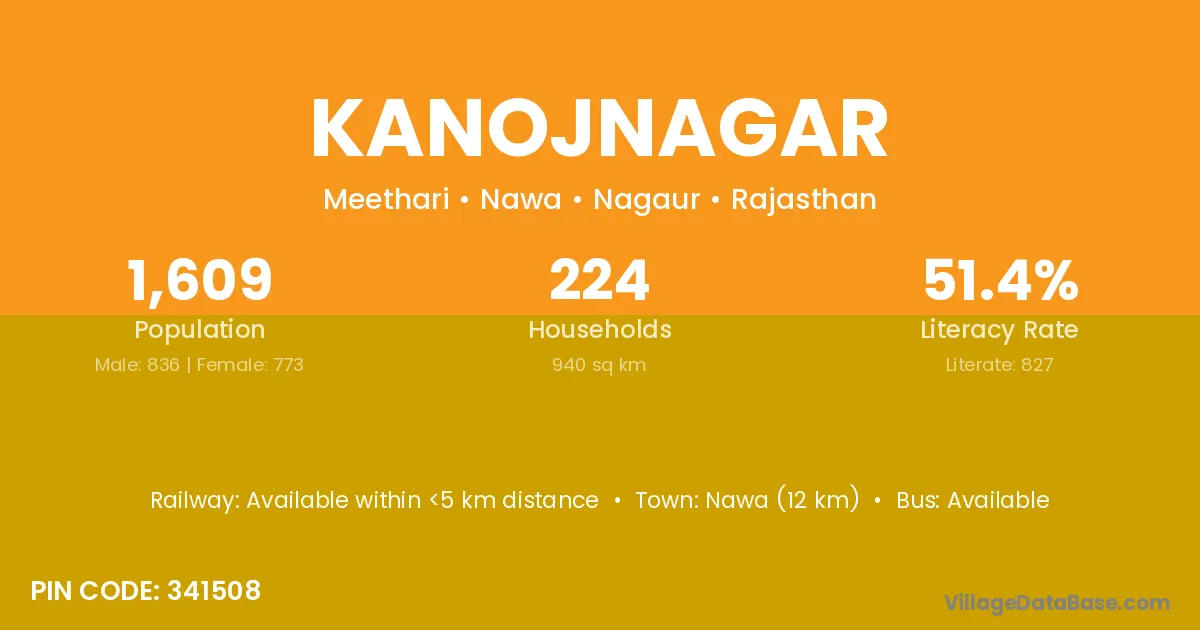Nawa (12 km) is the nearest town to Kanojnagar village for major economic activities and is located approximately 12 km away.