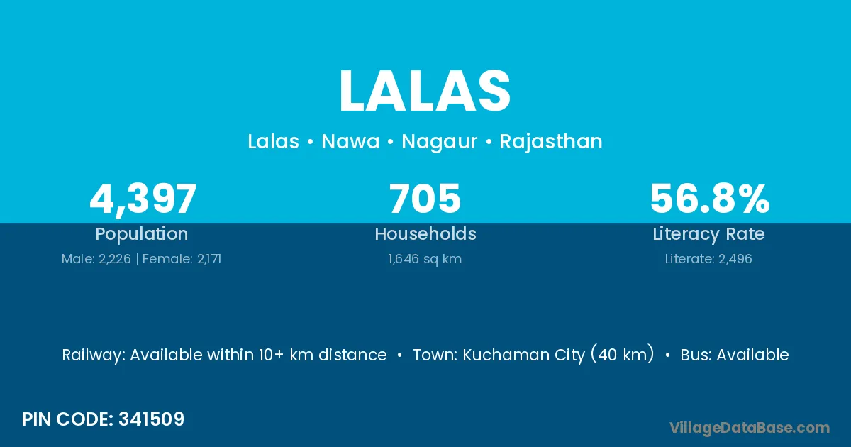 Kuchaman City (40 km) is the nearest town to Lalas village for major economic activities and is located approximately 40 km away.