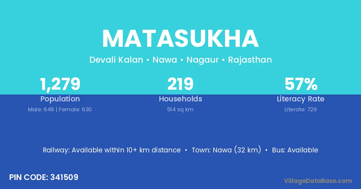 Nawa (32 km) is the nearest town to Matasukha village for major economic activities and is located approximately 32 km away.