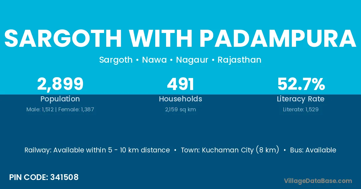 Kuchaman City (8 km) is the nearest town to Sargoth With Padampura village for major economic activities and is located approximately 8 km away.