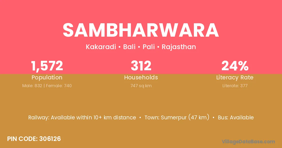 Sumerpur (47 km) is the nearest town to Sambharwara village for major economic activities and is located approximately 47 km away.