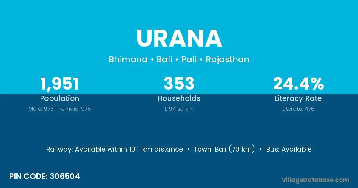 Bali (70 km) is the nearest town to Urana village for major economic activities and is located approximately 70 km away.