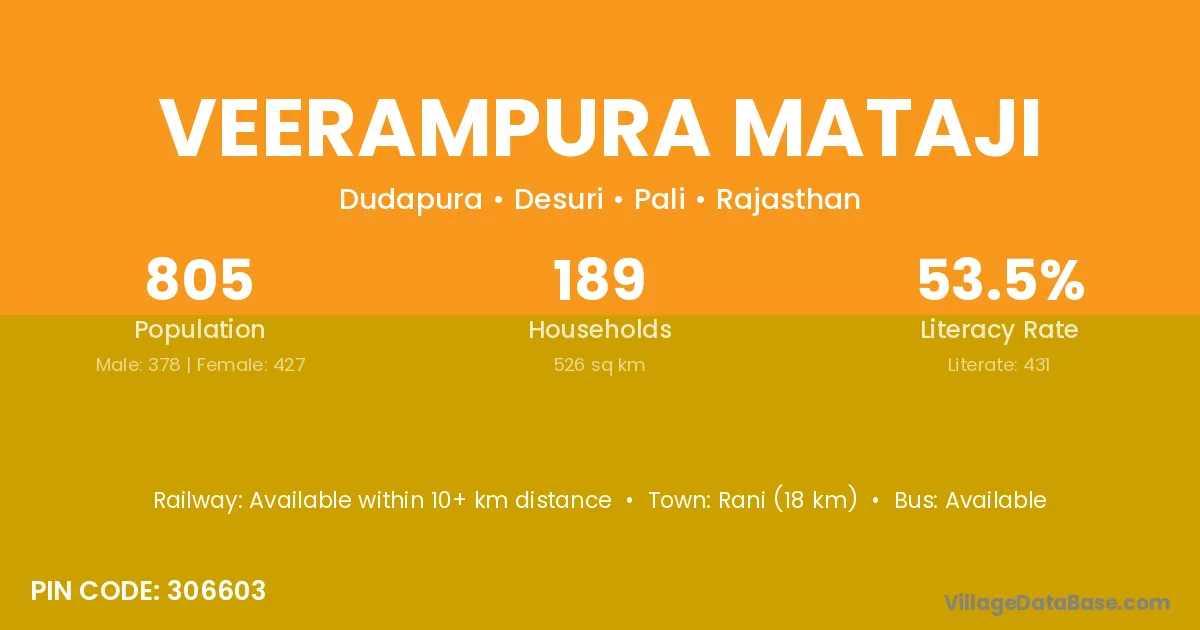 Rani (18 km) is the nearest town to Veerampura Mataji village for major economic activities and is located approximately 18 km away.